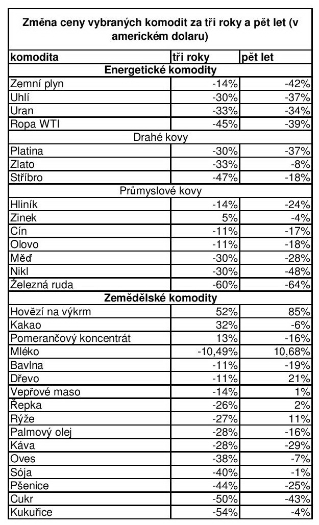 Když by analytici ČNB uskutečnili opravdu detailní analýzu vývoje cen komodit, tedy surovin nezbytných pro energetiku i průmyslovou a potravinářskou produkci, došli by k objektivnímu názoru, že většina cen těchto komodit se v posledních letech pohybuje spíše po sestupné trajektorii. Nemluvím o výkyvech, které často způsobují poryvy nabídky a poptávky či také gigantické spekulace na komoditních burzách, ale o dlouhodobé tendenci.