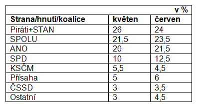 A tak, když Piráti se STAN v červnu zaznamenali podle Kantar CZ oproti květnu pokles o 2% preferencí, tyto preference okamžitě přešly na koalici SPOLU. Z hlediska pravice se tedy nic nezměnilo.