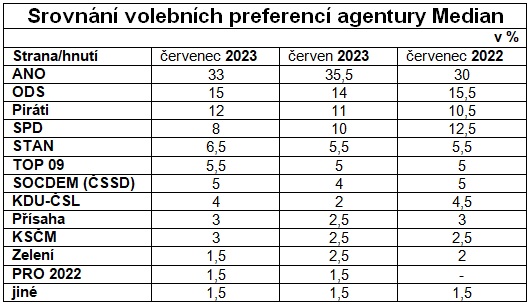 Median vykonstruoval, že podle červencového průzkumu by vládní strany měly jen 92 mandátů. A k tomu můžeme připočítat ještě protibabišovskou SOCDEM a už jsme na 106 mandátech....