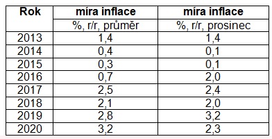 Vývoj míry inflace v letech 2013 – 2020